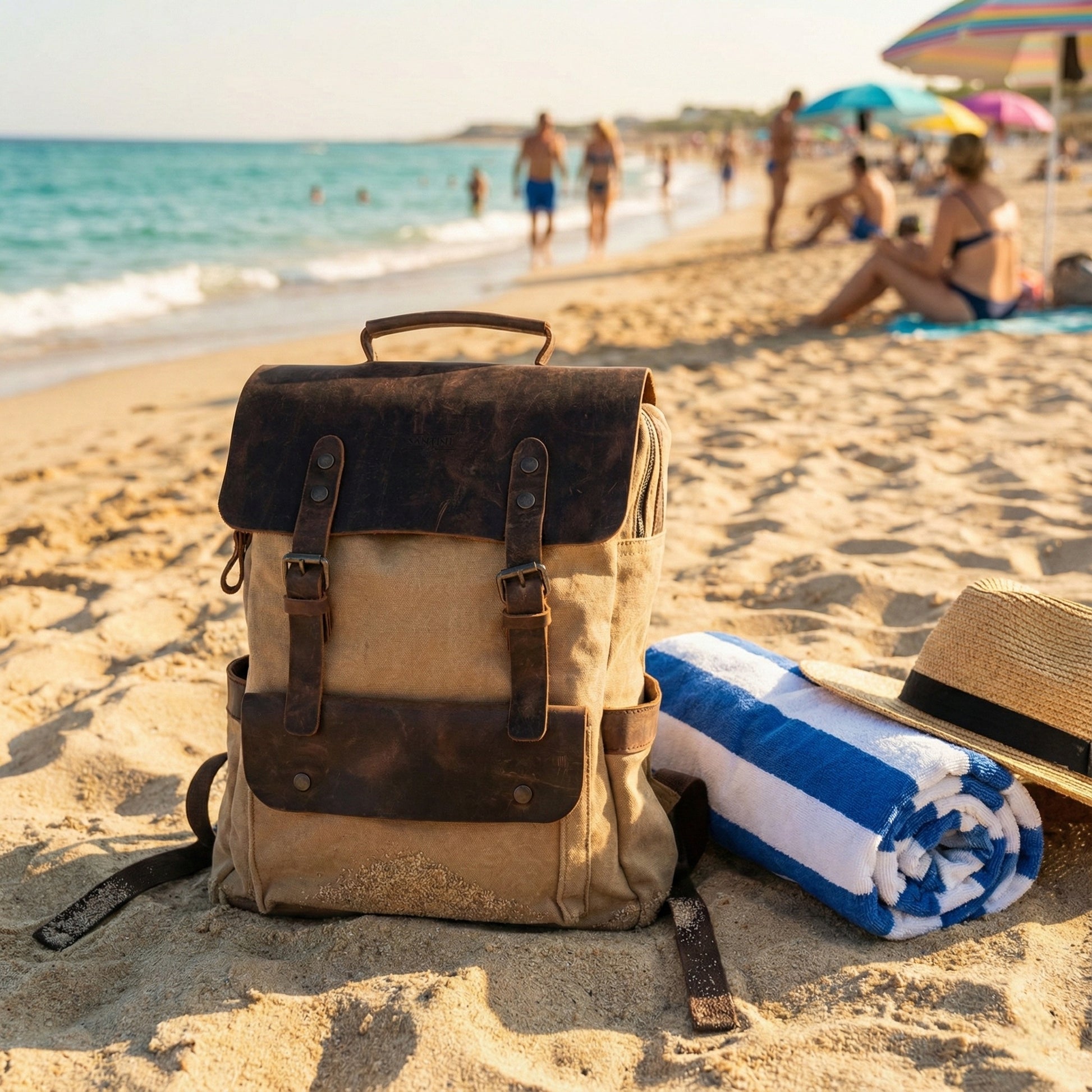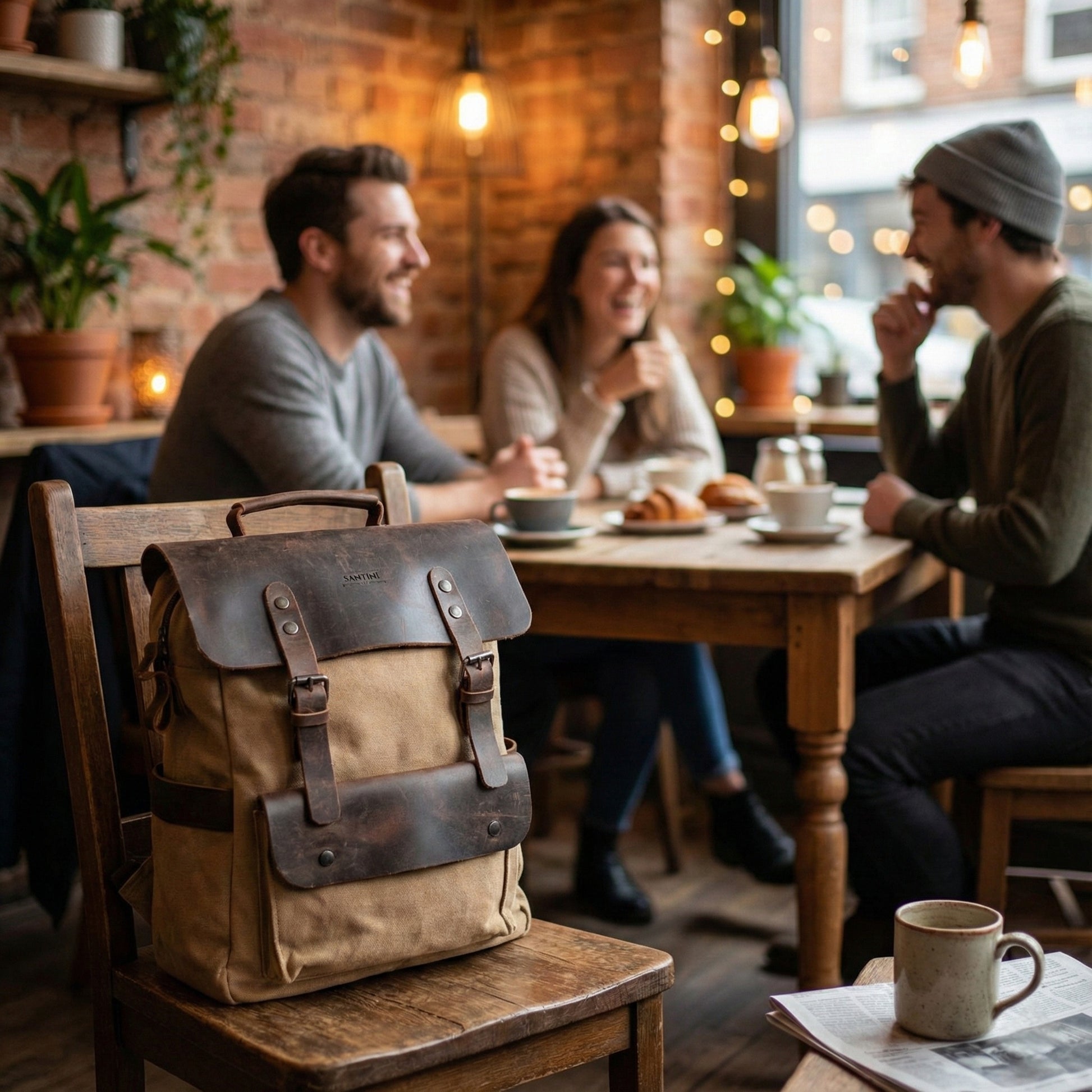 Mochila Santino de Lona y Cuero Real | Resistente, Elegante y Funciona