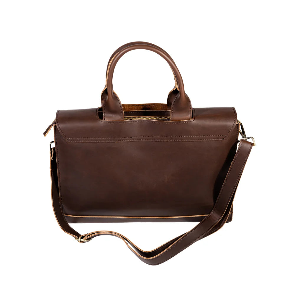 Su diseño en marrón oscuro aporta un look profesional ideal para ejecutivos, estudiantes universitarios y quienes buscan un accesorio duradero y con estilo.