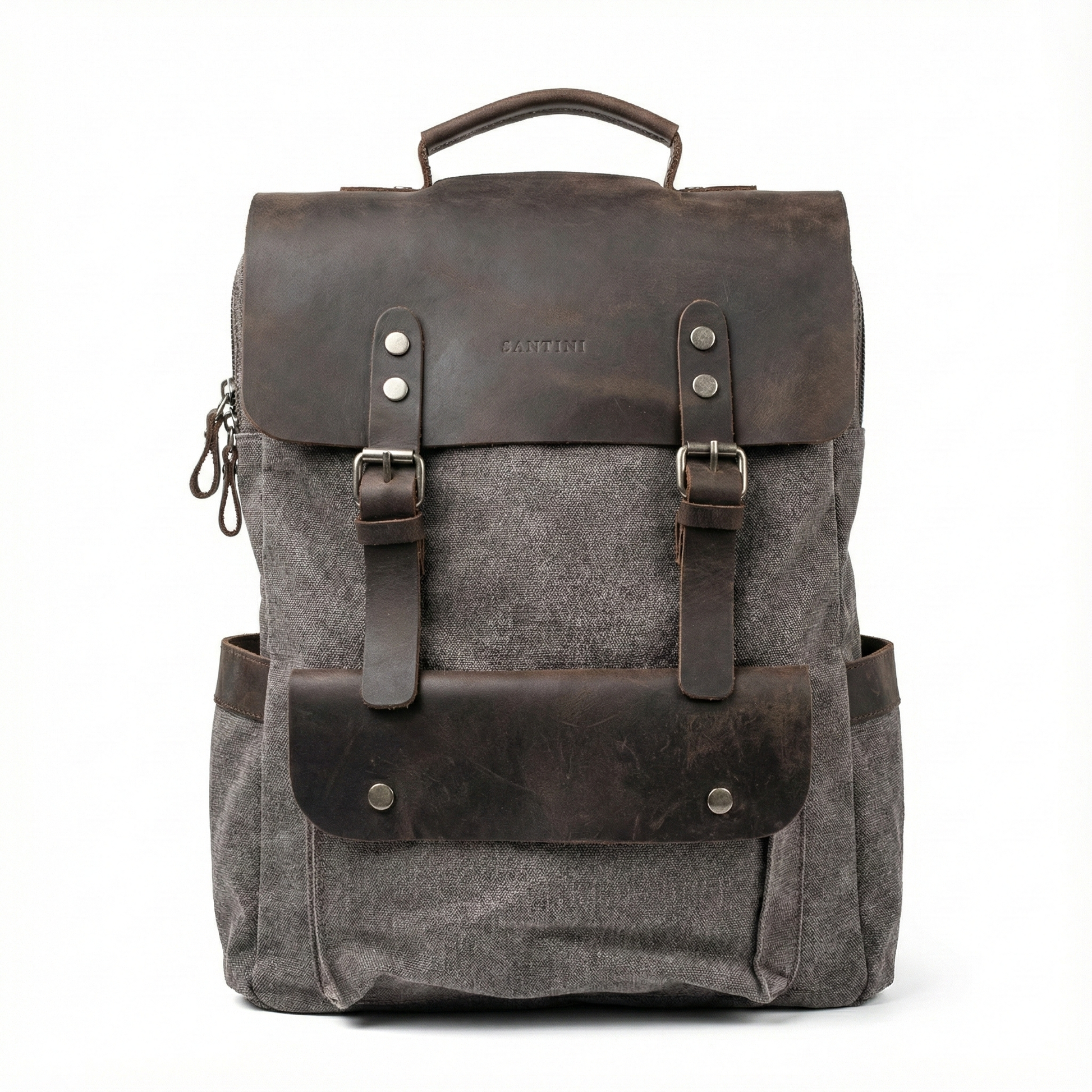 Mochila Santino Gris de Lona y Cuero Vegano | Elegante, Moderna y Resistente